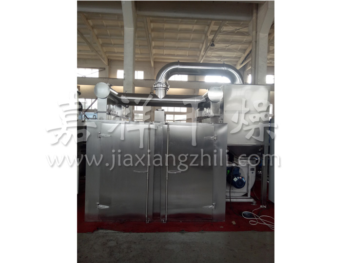 1 .选用大风量、高风压的离心风机作为循环风机进行强制通风,这样可以加快物料烘干速度,保证物料干燥均匀度。